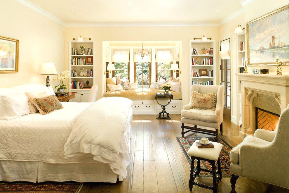 Traditional Master Bedroom With Hardwood Floors Built In